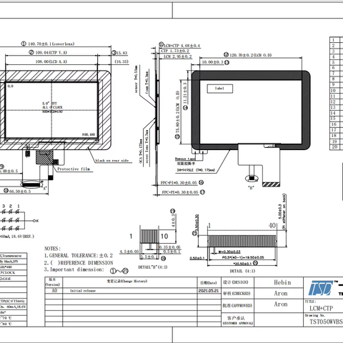 5.0 Inch Rgb Interface Tft Lcd Module Met Capacitieve Touch Panel